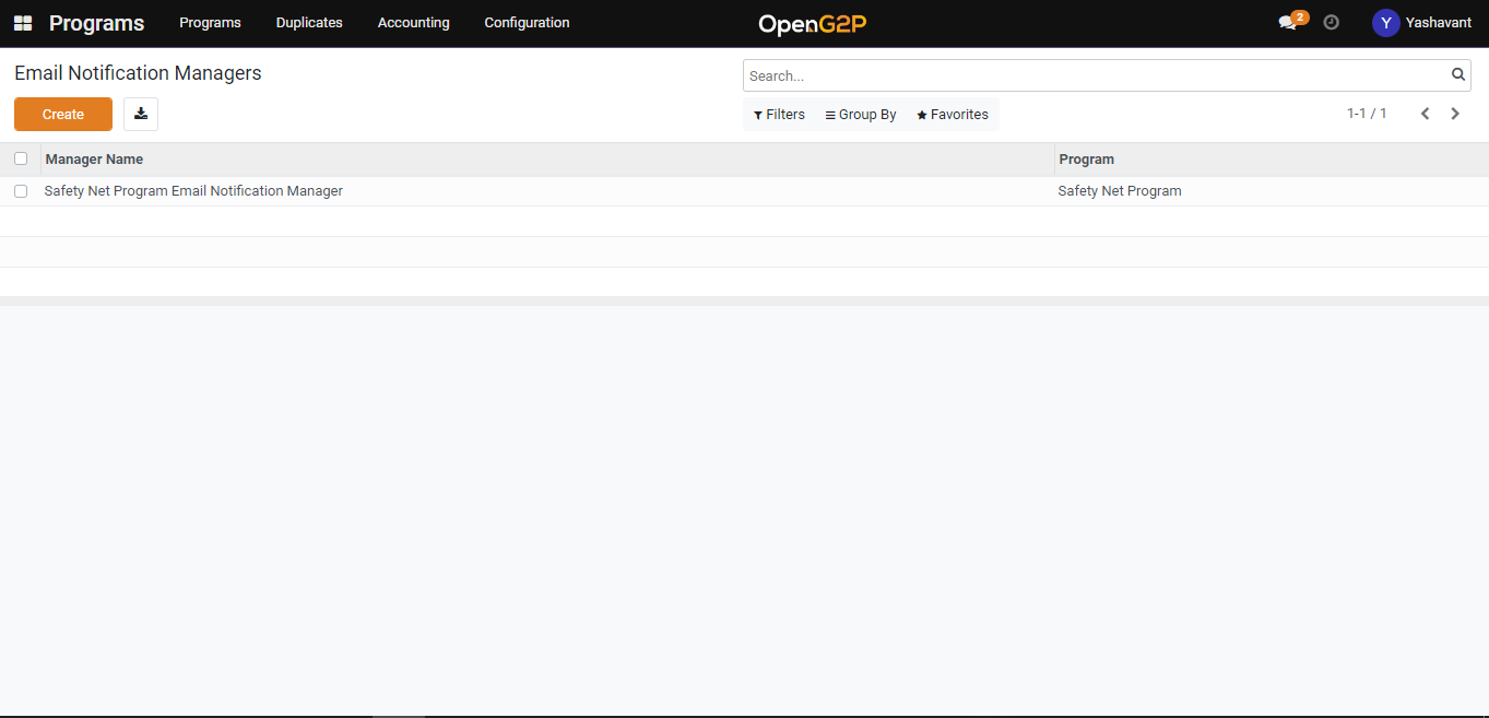 3. Click the *Create* button to navigate to the email notification manager creation page.