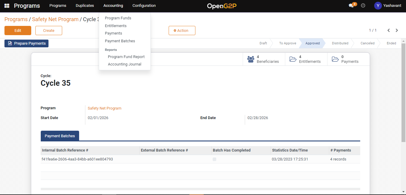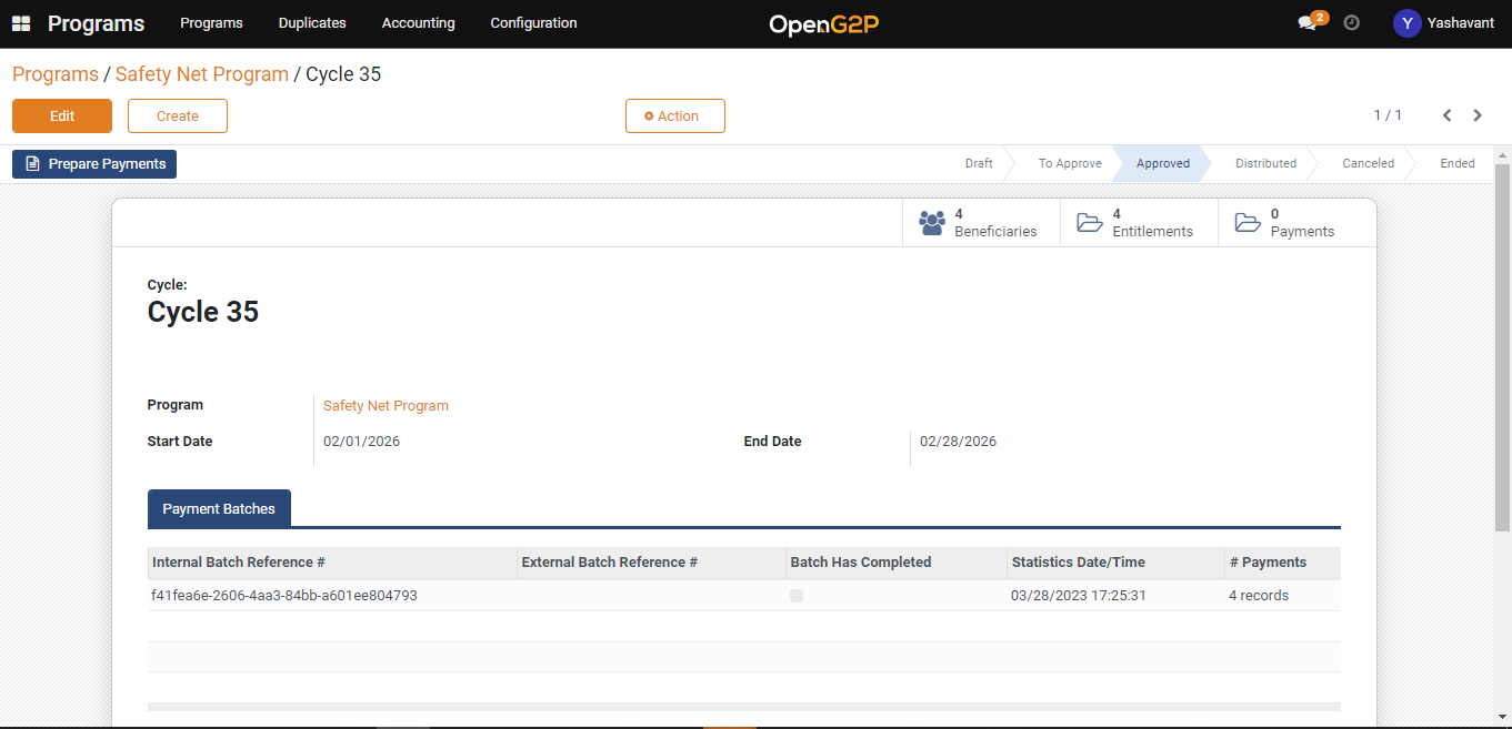 1. Navigate to the program for which [cycle creation and approval](https://docs.openg2p.org/1.0.0/guides/user-guides/create-and-approve-disbursement-cycle) are done.