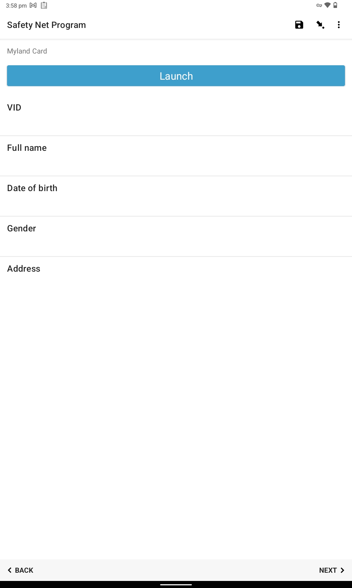 3. At some point, the form will have the *Launch* button. Click on the *Launch* button to scan the QR code on the National ID of the Beneficiary.