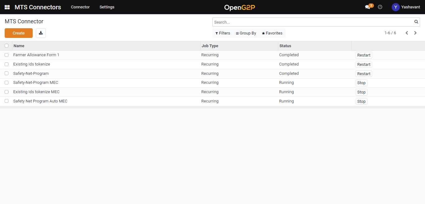 Set MTS Input Type as OpenG2P Registry and for other fields configuration please go through Registry MTS Connector.