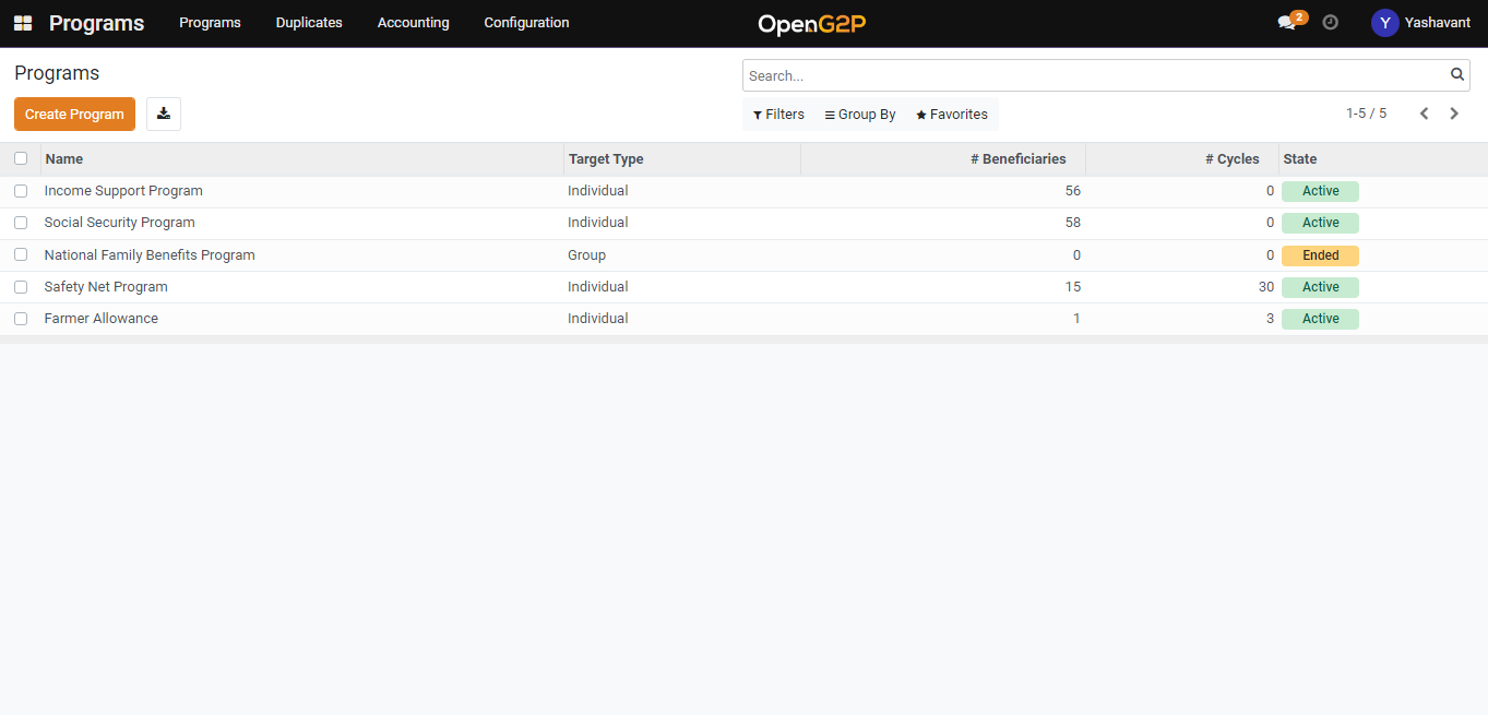 * The user must have a Program Manager role. See [Create User and Assign Role](https://docs.openg2p.org/1.1/guides/user-guides/assign-roles-to-users) guide.