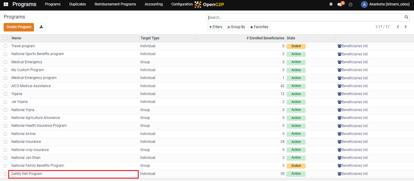 The user is a Program Administrator and has configured multiple stages of entitlement and assigned an entitlement manager for each stage. Learn more about creating multiple stages of entitlement [here](https://github.com/OpenG2P/openg2p-documentation/blob/1.1/guides/user-guides/broken-reference/README.md).