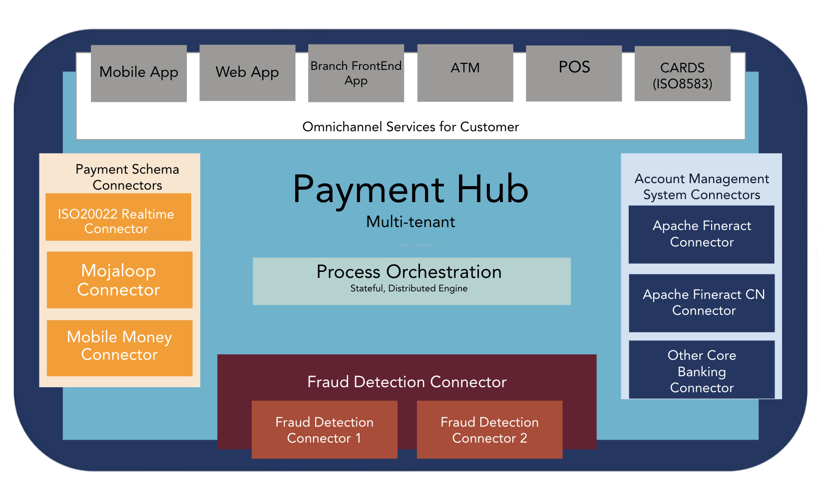 Payment Hub connects to Mojaloop via the Mojaloop Connector.