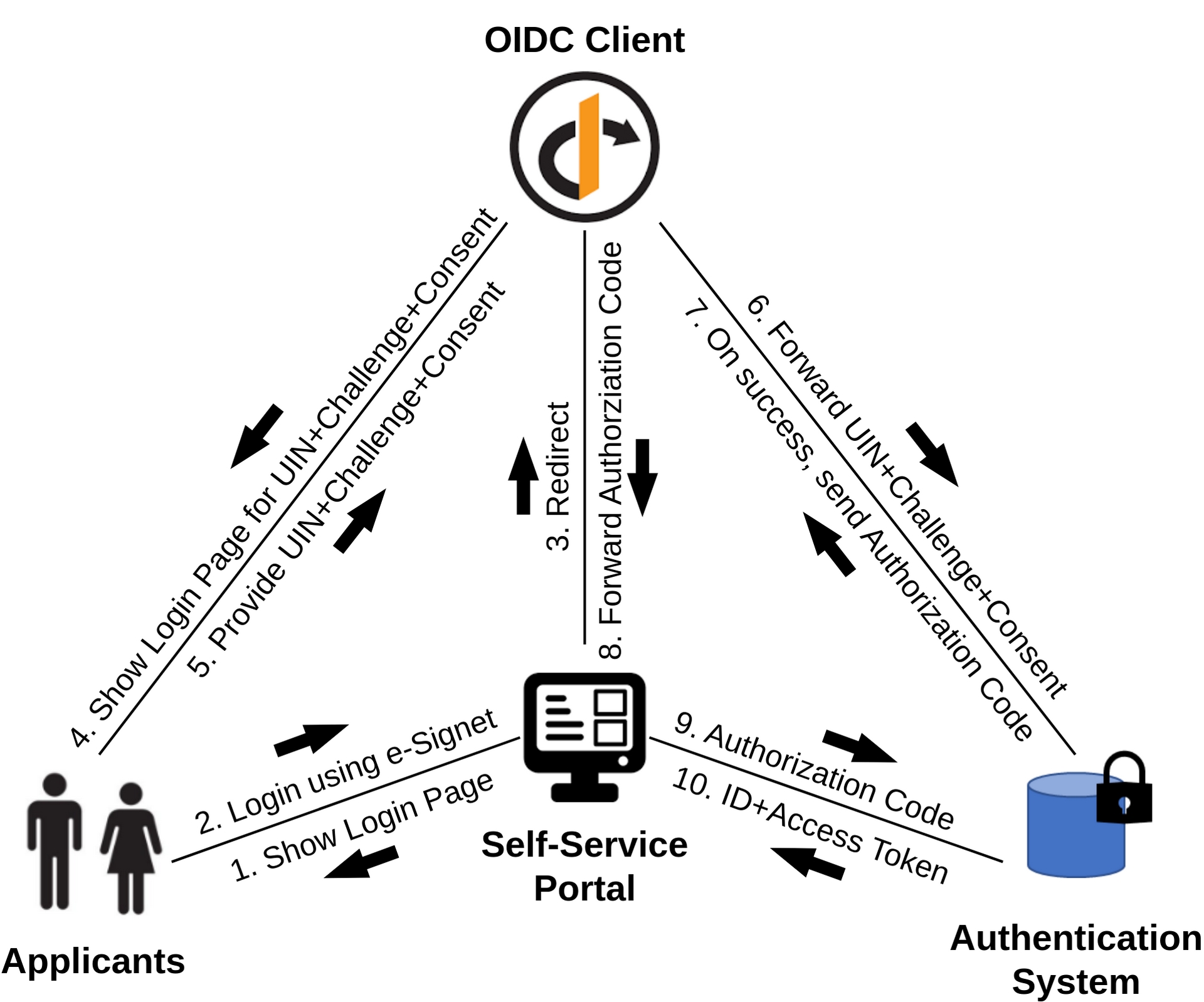 OpenG2P's Self-Service Portal can be integrated with an OIDC Client such as e-Signet to build a trustworthy authentication interface. The OIDC Client utilizes an authentication system of any foundational or functional ID database to authenticate the registrants in the backend.