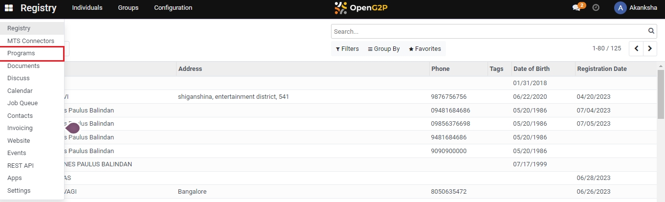 The Programs detail page shows the number of beneficiaries enrolled in the program.