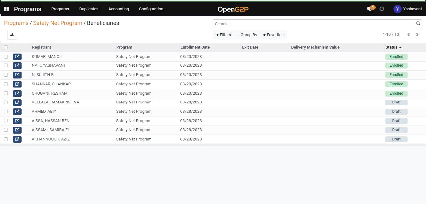 After landing on Program detailed view page, check the beneficiaries section for the registrants who are in draft status.