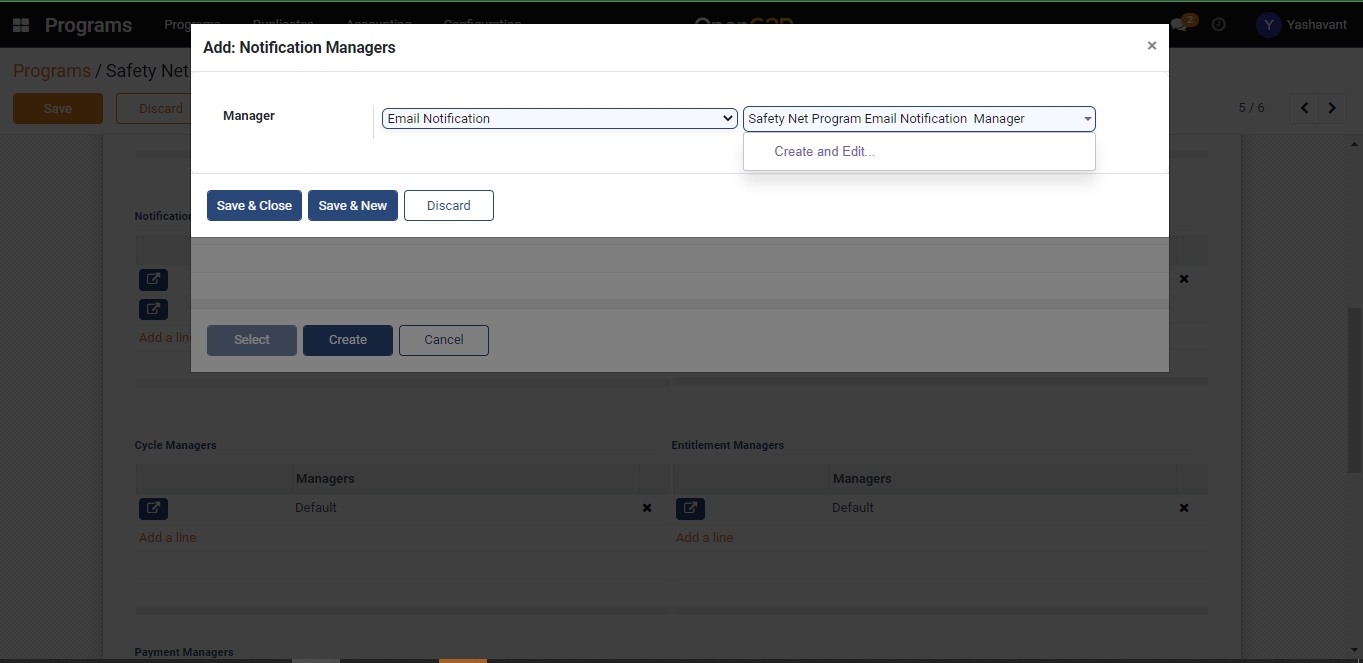 Click on the Create button on the Add: Notification Managers pop-up window.