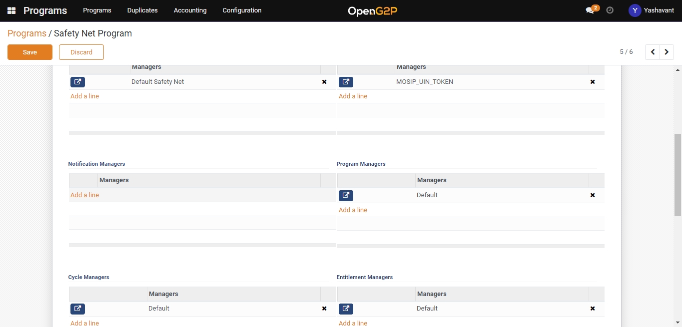 Click on the program name for which configuration to be done.