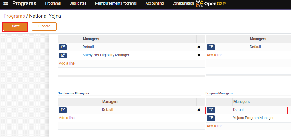 4. Click on the *Add a line* in the *Program Managers* section.