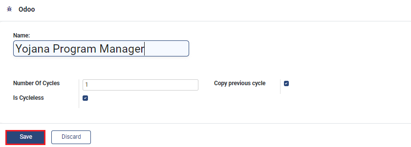 8. Enter the required *Number of Cycles.* Enable the checkbox *Copy previous cycle* to allow each cycle to copy the beneficiary details from the previous cycle. Enable *Cycleless* if no cycles are required in the program.