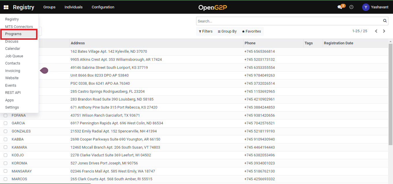 The selected program screen is displayed. For example, here the program selected is Individual Cash Program.