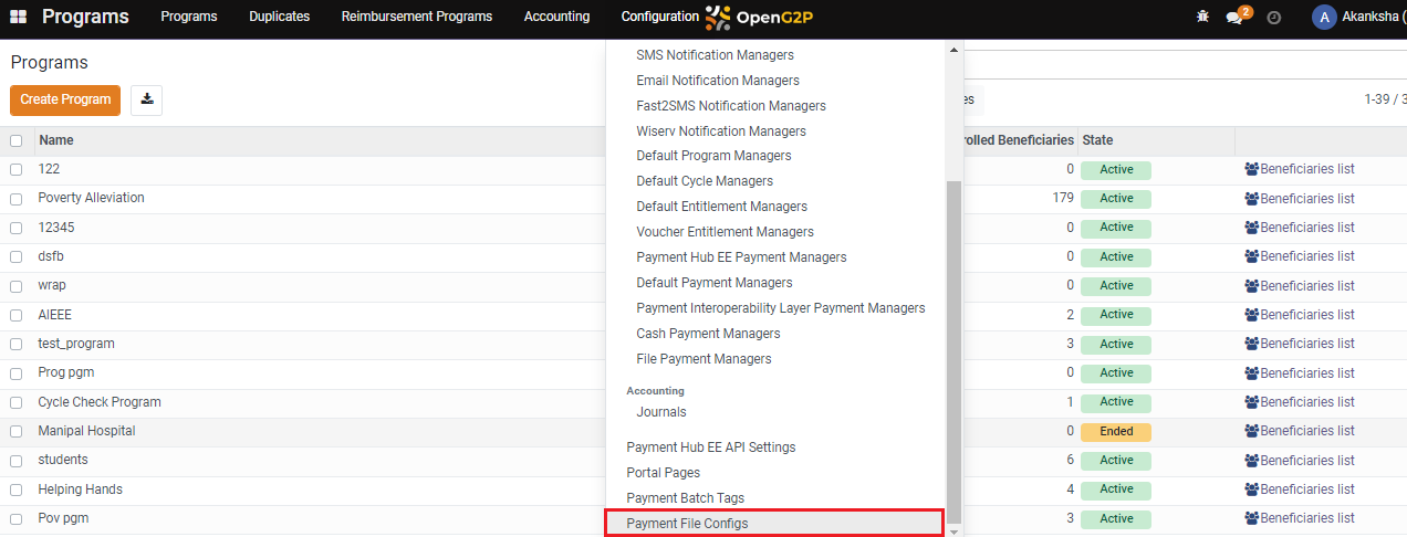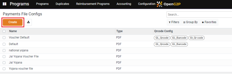 4. Click the *Create* button to view the *Payments File Configs* creation page.