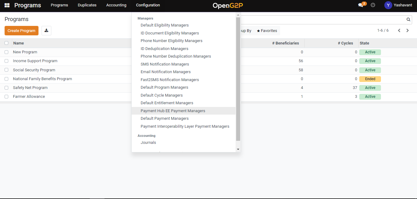 Select the program name from the drop-down for which the eligibility manager is created
