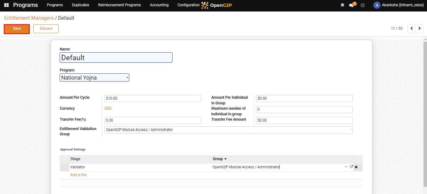 If you wish to add multiple managers for entitlement approval then click on Add a Line in the Approval Settings section_._
