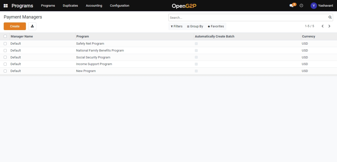 Once the payment manager is saved it will be listed under the payment manager list view page which further can be used under the program configuration for which it was created.