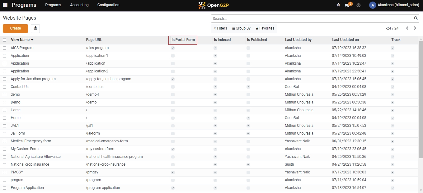 The previous step will take you to the Website Pages/Program Application. Check the box Is Portal Form and click on Save.