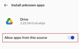 Enable the option Allow apps from this source, click on the downloaded file, and install the application as described in step#2.