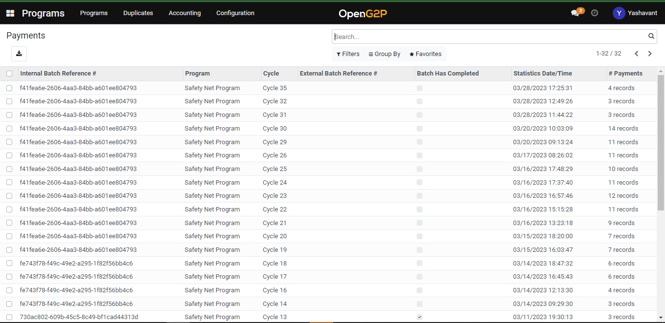Click on the Prepare Payment button to create a batch for the approved cycle entitlements.