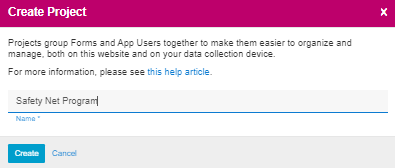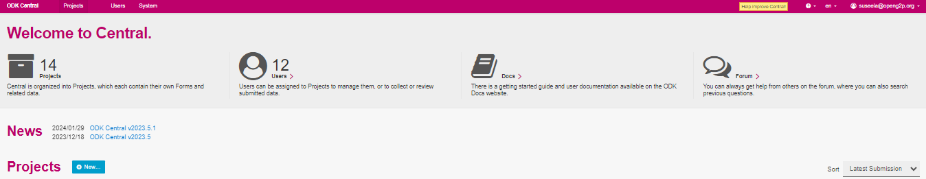 You can find the newly created project Safety Net Program listed in the ODK Central home screen