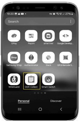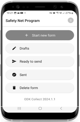 Taps the ODK Collect App in his/her mobile. The configured program form is displayed. Initially a program form is in draft mode.