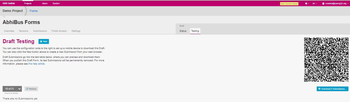 12. Scan the ***QR code*** of a relevant form in a project from the ***ODK Central***.