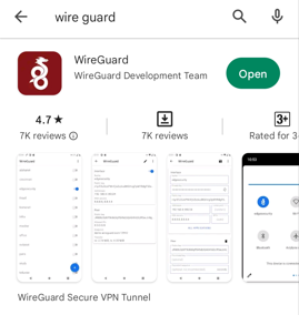 1. In the Android play store, search for "wireguard" and then tap **Install**.