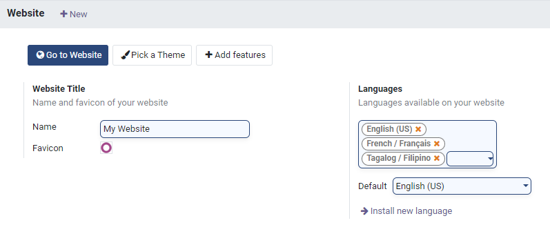 The image below shows that English, French, and Tagalog are selected for the websites.