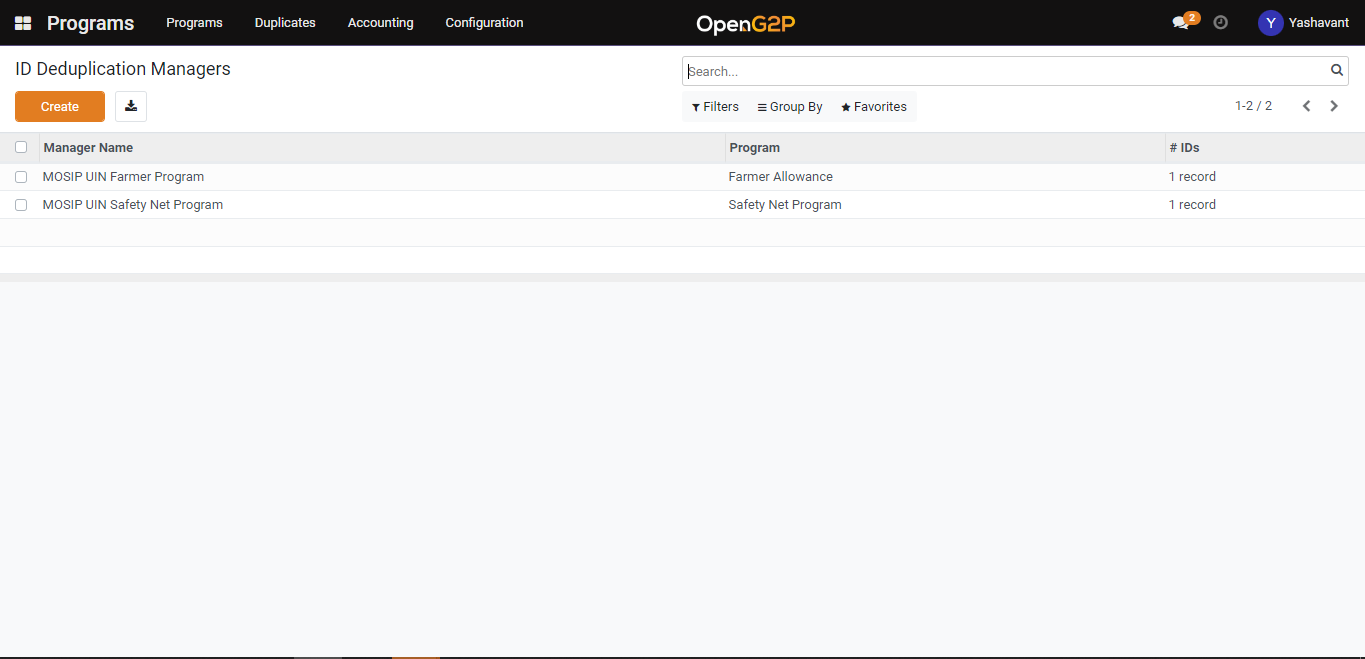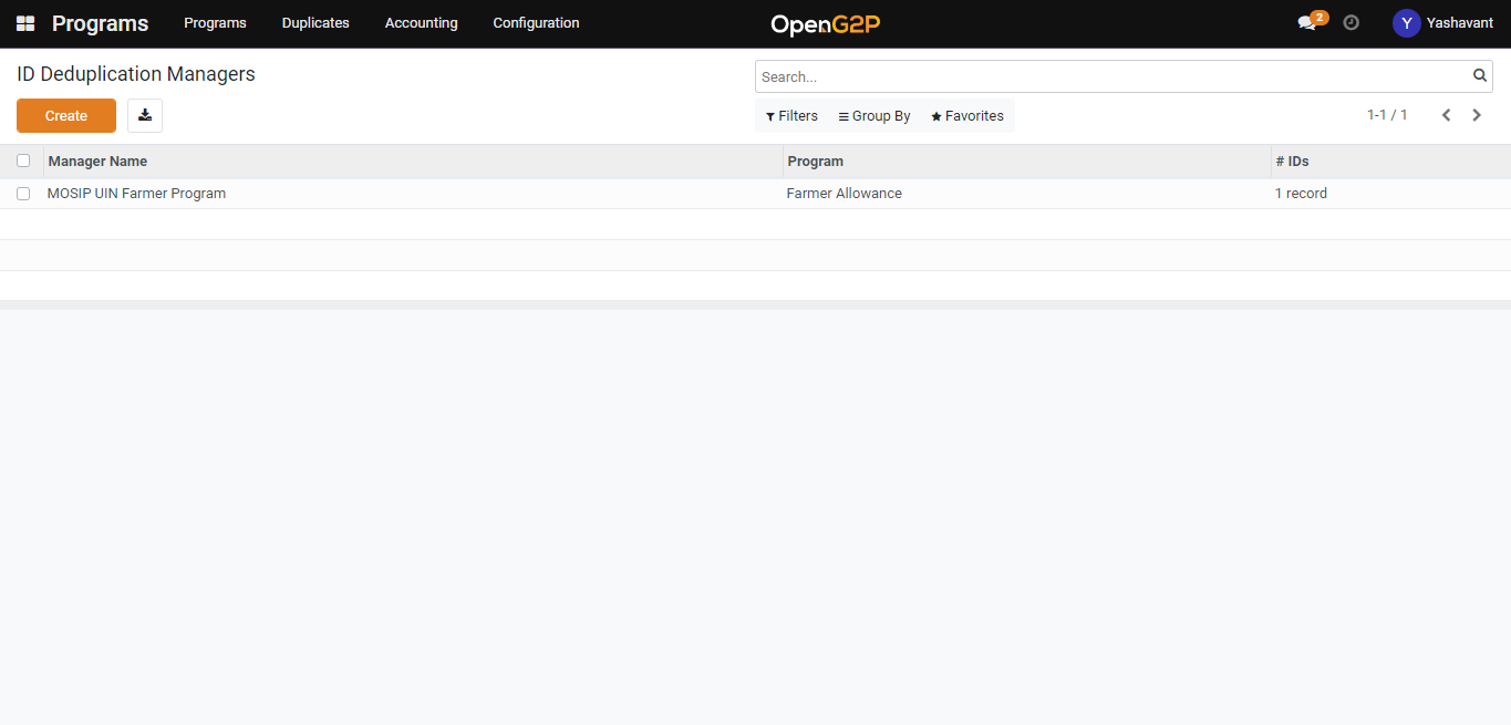 4. Once the ID deduplication manager is saved it will be listed under the ID deduplication manager list view page which can further be used under the program configuration for which it is mapped.