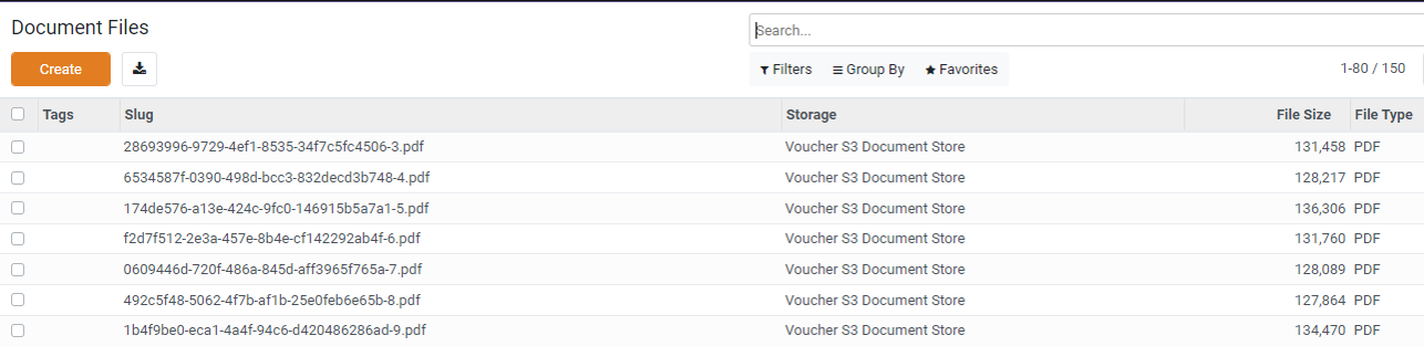 Each document file is assigned a Universally Unique ID (UUID) known as S\_lug\_ by the system. Information about document store, file UUID, size, and type are available from a single view.