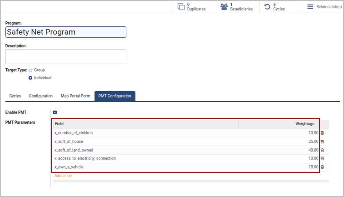 Proxy Means Test plug-in can be conveniently installed in the OpenG2P platform. The observable characteristics are referred to as computed fields in the OpenG2P platform. To learn the steps to configure computed fields, click [here](https://docs.openg2p.org/1.3/pbms/functionality/eligibility/user-guides/configure-proxy-means-test).
