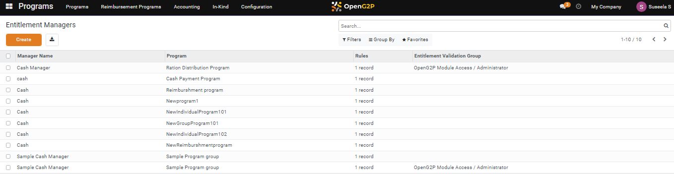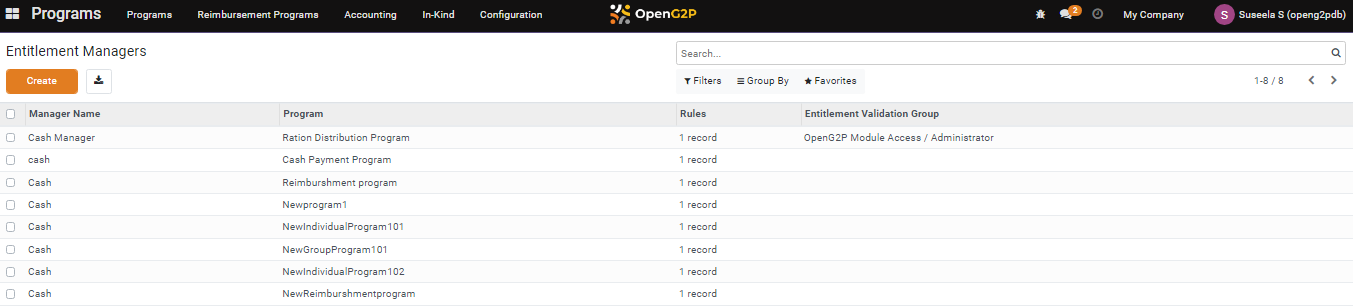***Entitlement Managers/New*** screen lists the newly created entitlement items.