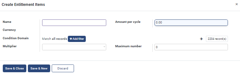 13. Click the ***Save & New*** button to save and create new entitlement items.