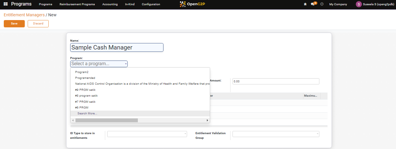 5. Select the appropriate program from the drop-down. (or) Select the ***Search More...*** option from the drop-down.