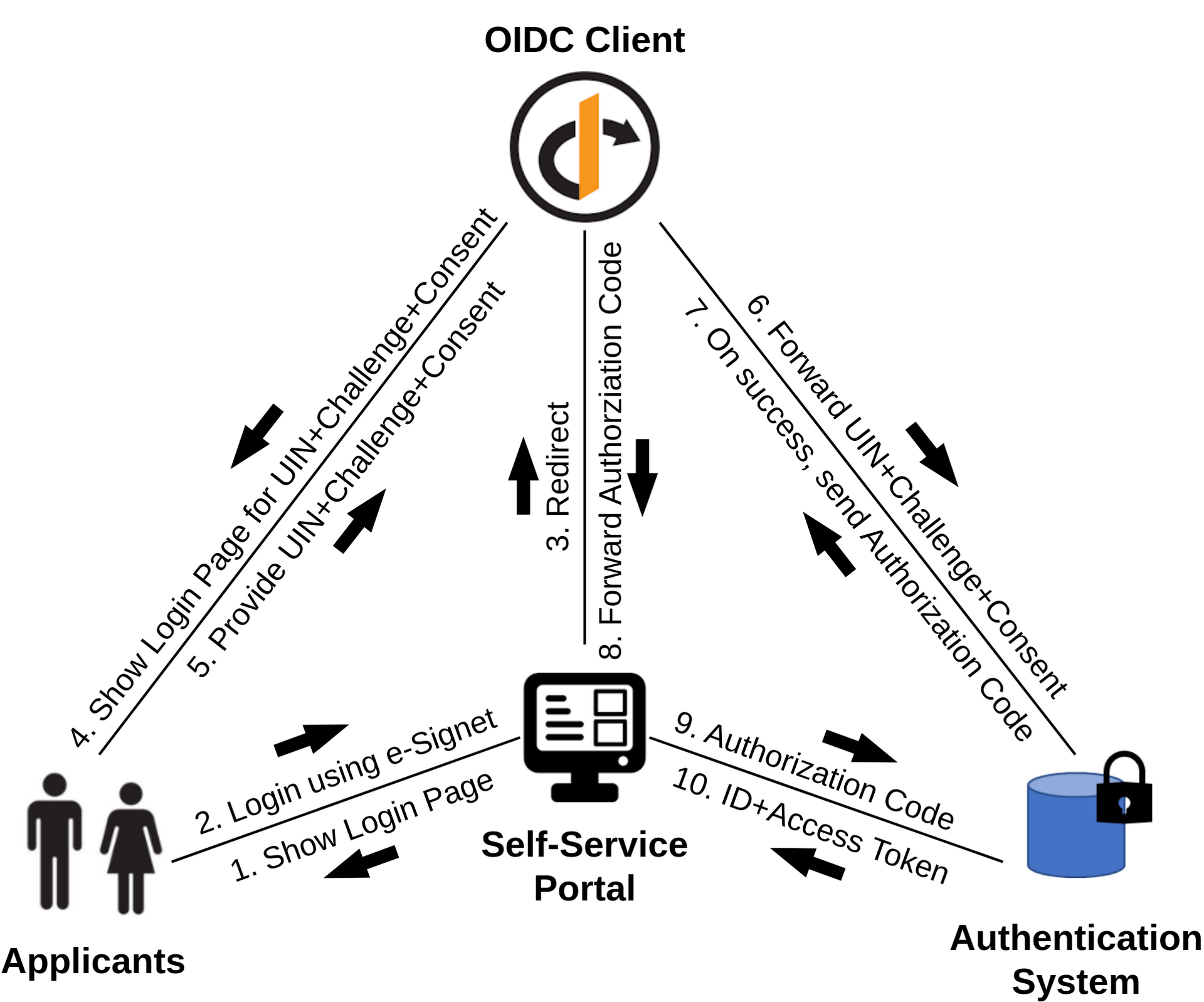 OpenG2P's Self-Service Portal can be integrated with an OIDC Client such as eSignet to build a trustworthy authentication interface. The OIDC Client utilizes an authentication system of any foundational or functional ID database to authenticate the registrants in the backend.