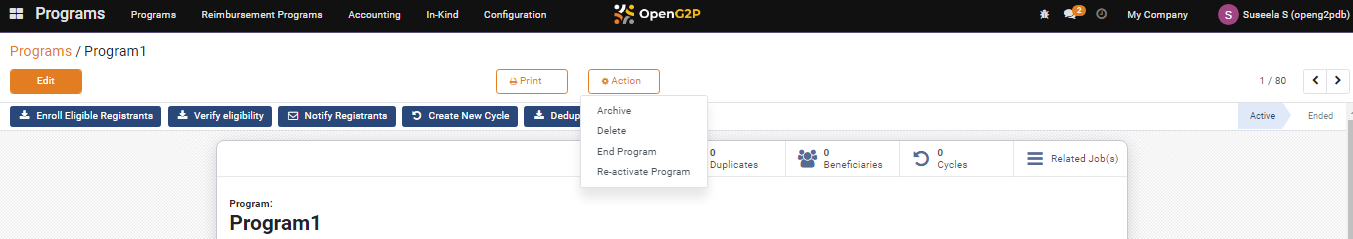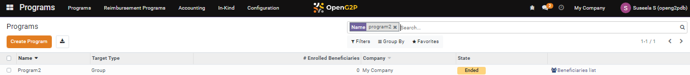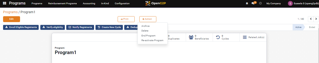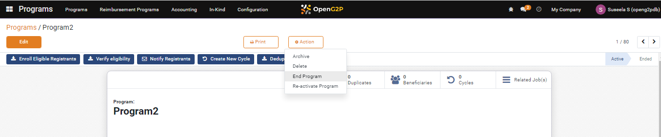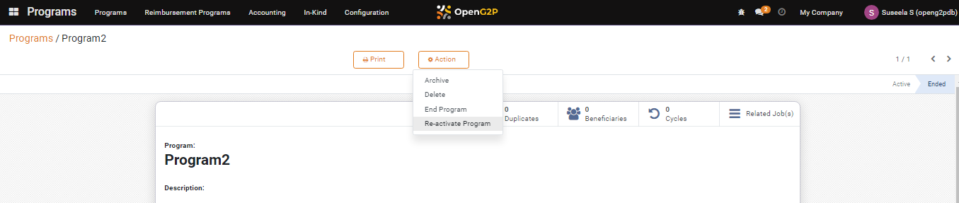 The program is ended and you can find the program status is changed from active to ended in the Program list.