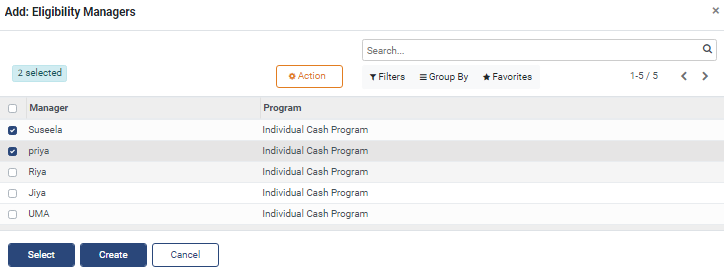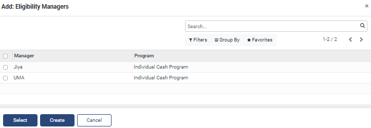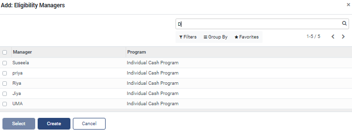 In the ***Add Eligibility Managers*** screen, you can find the list of Eligibility Manager.
