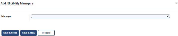 4. The below screen ***Add: Eligibility Managers*** screen is displayed.