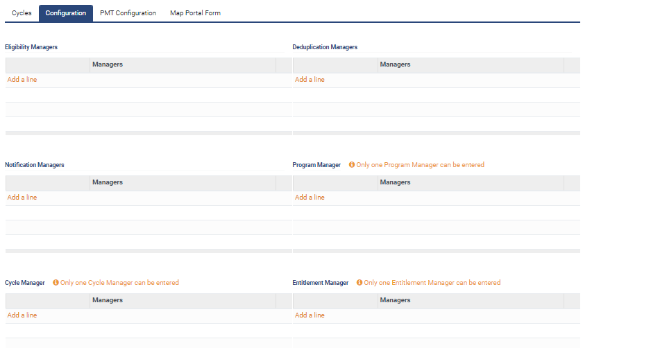 1. In the ***Eligibility Managers*** section, click the link ***Add a line.***