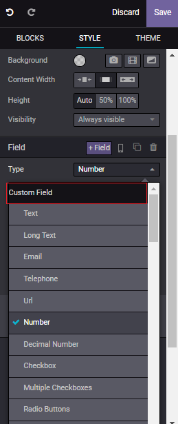 7. The *Edit* tool appears. Click on the *Form's Fields* to enable the *Style Section*.