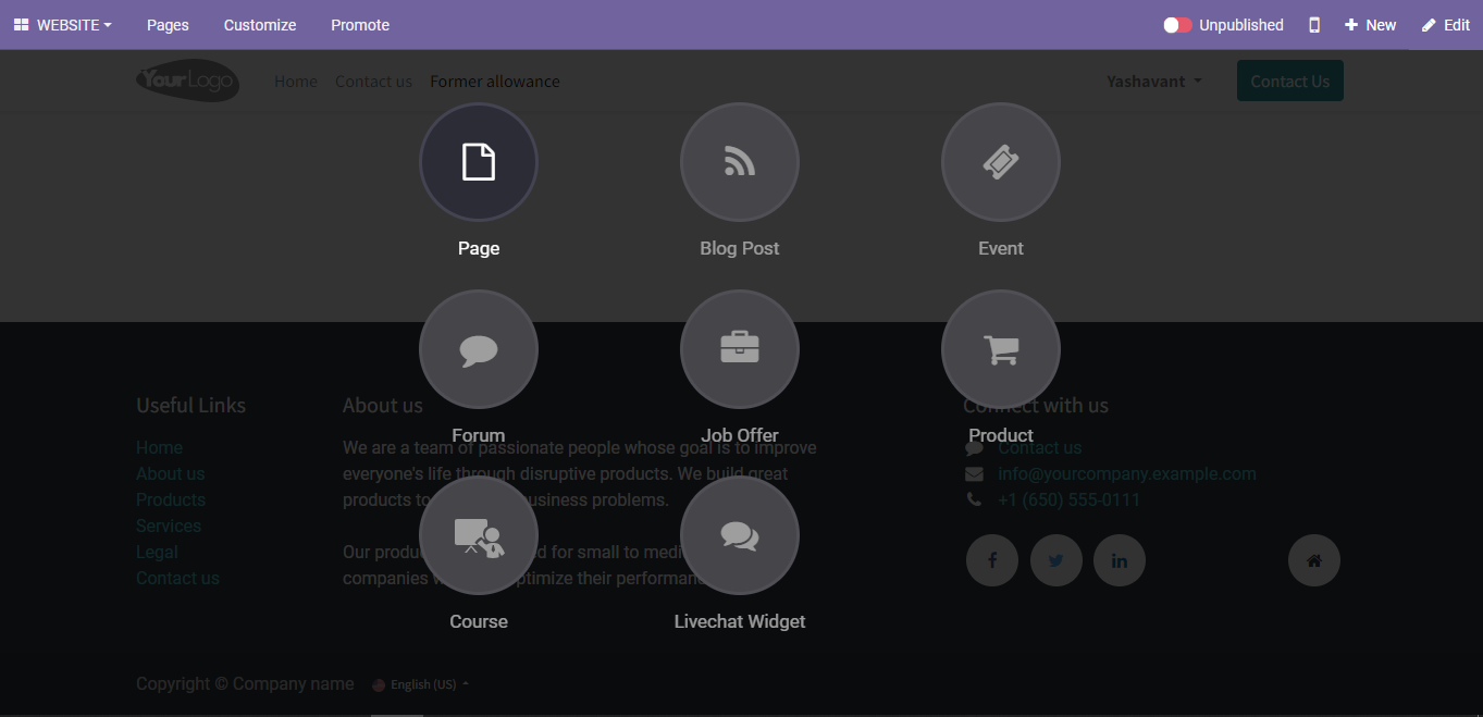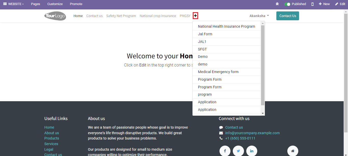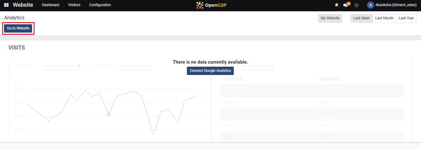 2. Click on *Go to Website* to navigate to the website home page.