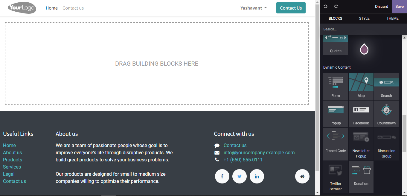 6. Drag and drop the *Form* in the *Dynamic Content* from the *BLOCKS* section