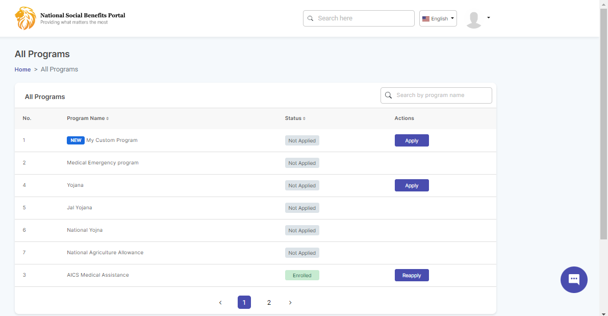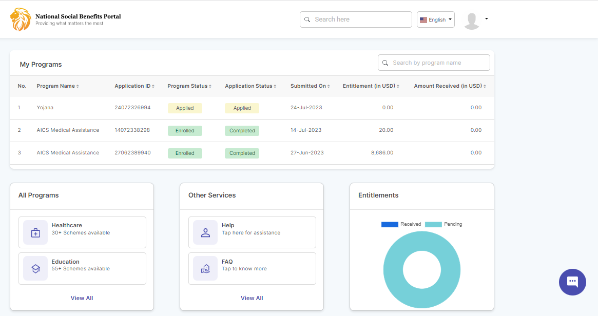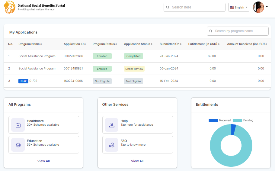 My application displays the program details of the beneficiary.