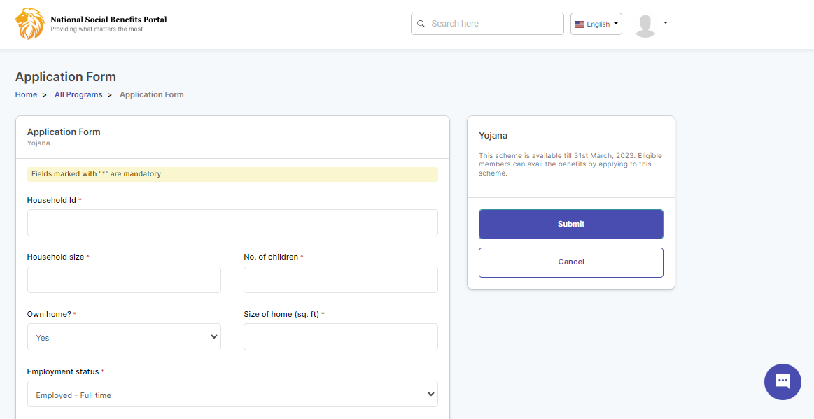 | Household size        | <p>Enter the household size of the beneficiary.</p><p>It is a mandatory field.</p>                                                            |