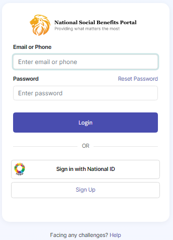 7. ***Login*** page of self-service portal for beneficiaries is displayed.