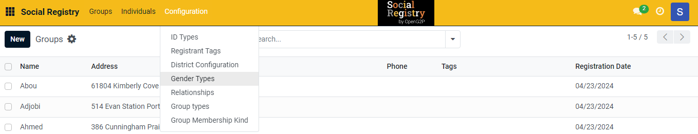 This completes the configuration of gender types in Social Registry module.