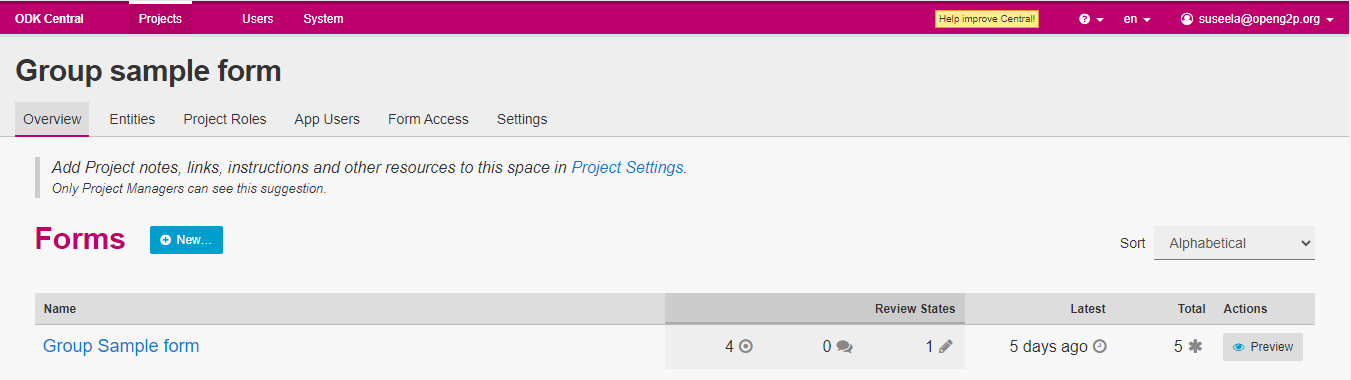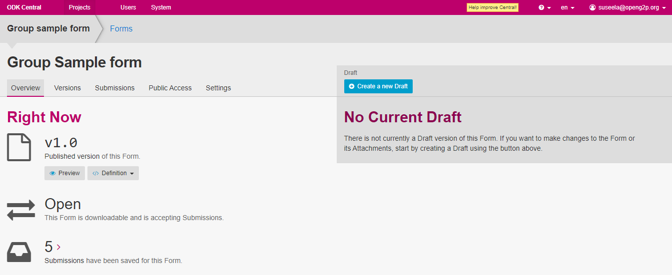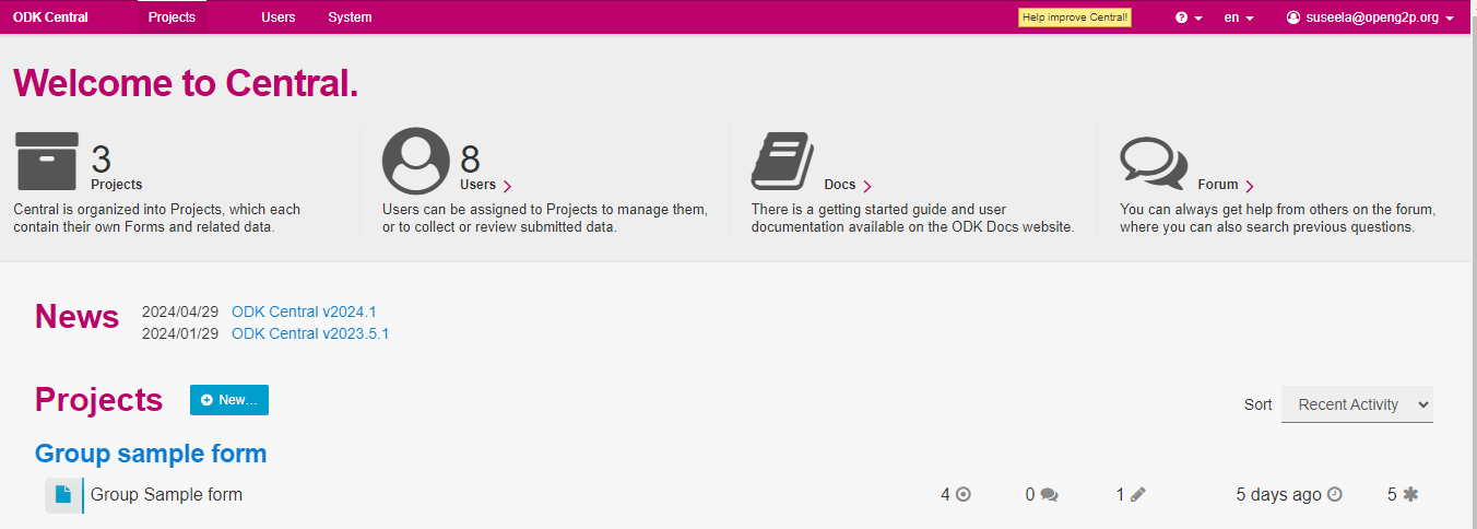1. Log into the ***ODK central*** with the valid credentials.
