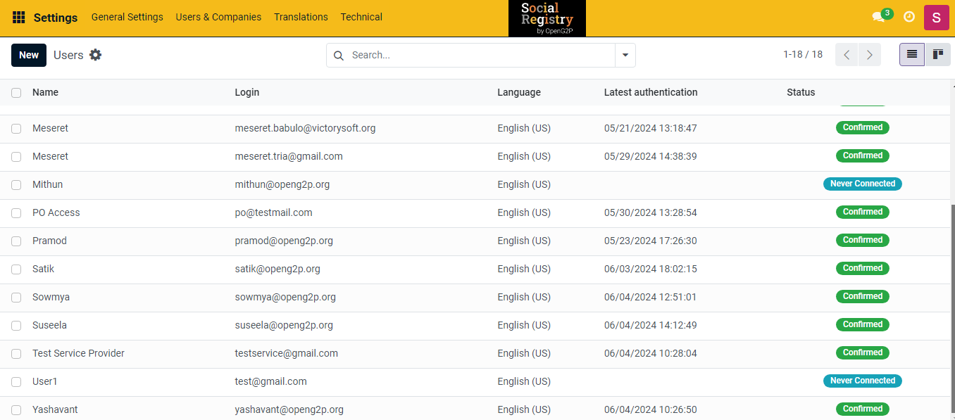 1. Use the link ***socialregistry.\<projectspecific>.openg2p.org/web/login*** to access SR.