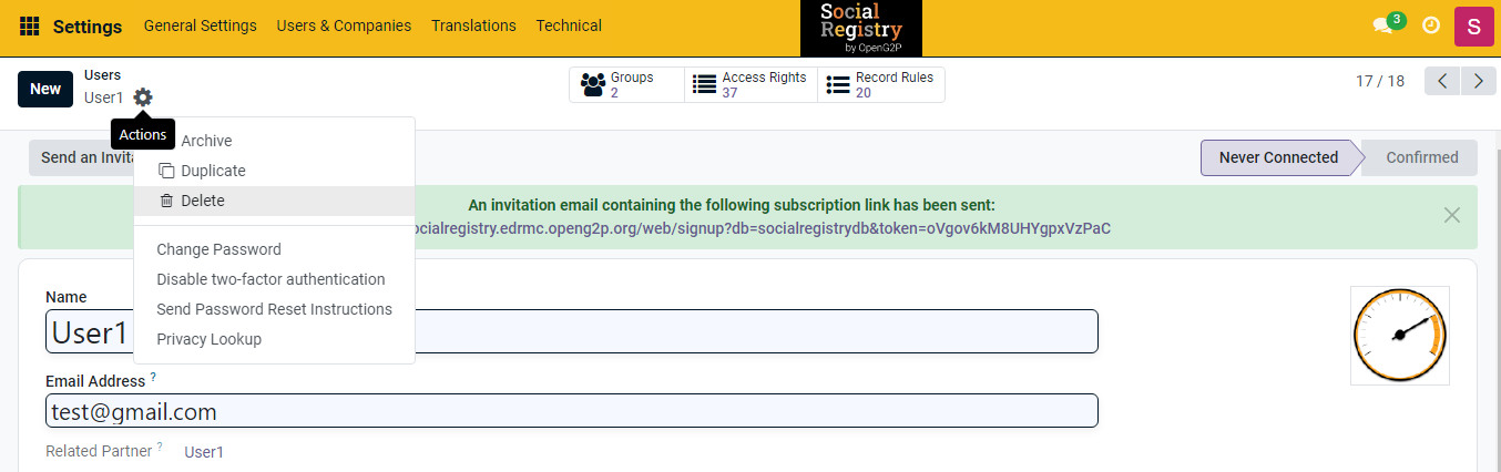 19. In the menu bar, Click the ***User & Companies*** ant select ***Users***.