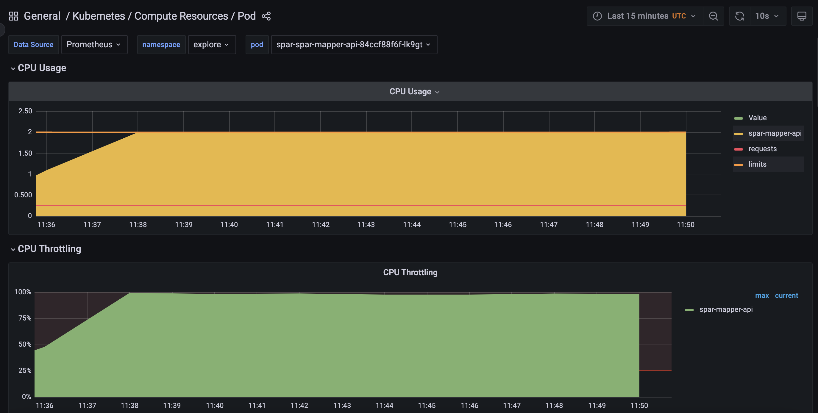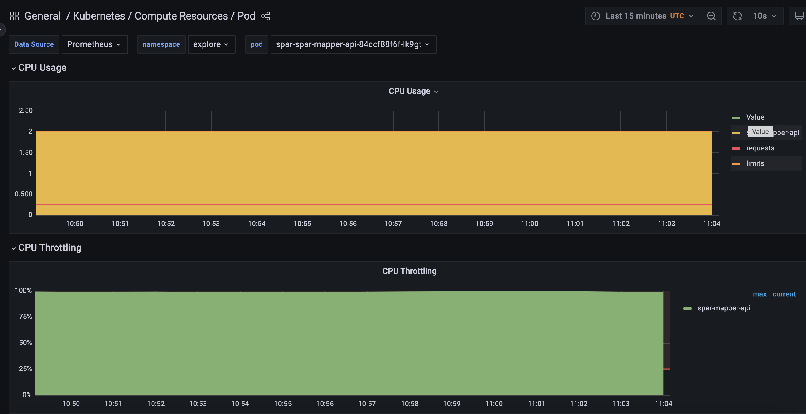 The CPU for the Mapper POD showed a 100% throttle at this stage