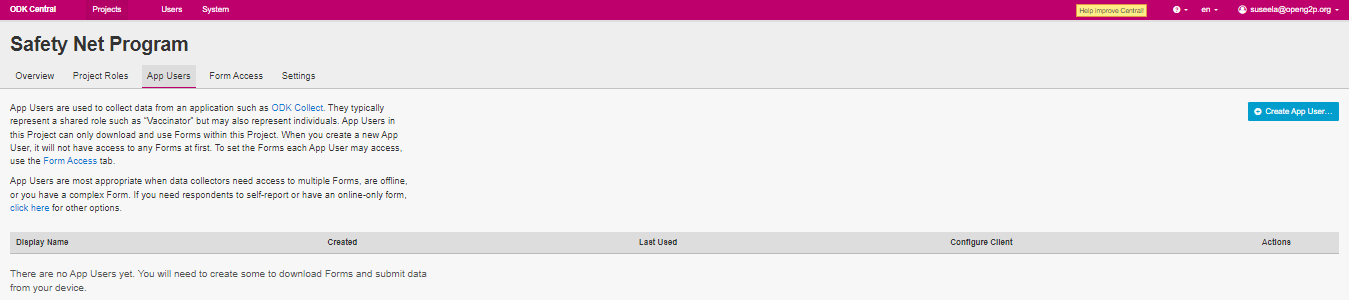 5. Click the ***+Create App User*** button to add a field agent to the program.